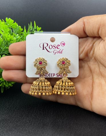 Matte Jhumka Flower with Red Stone