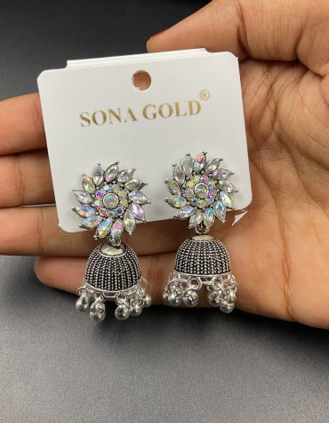 Silver Ad Stone Flower Jhumka