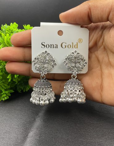 Silver Flower Moon Design Jhumka