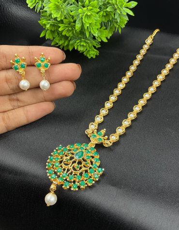 elephant pearl green gold chain