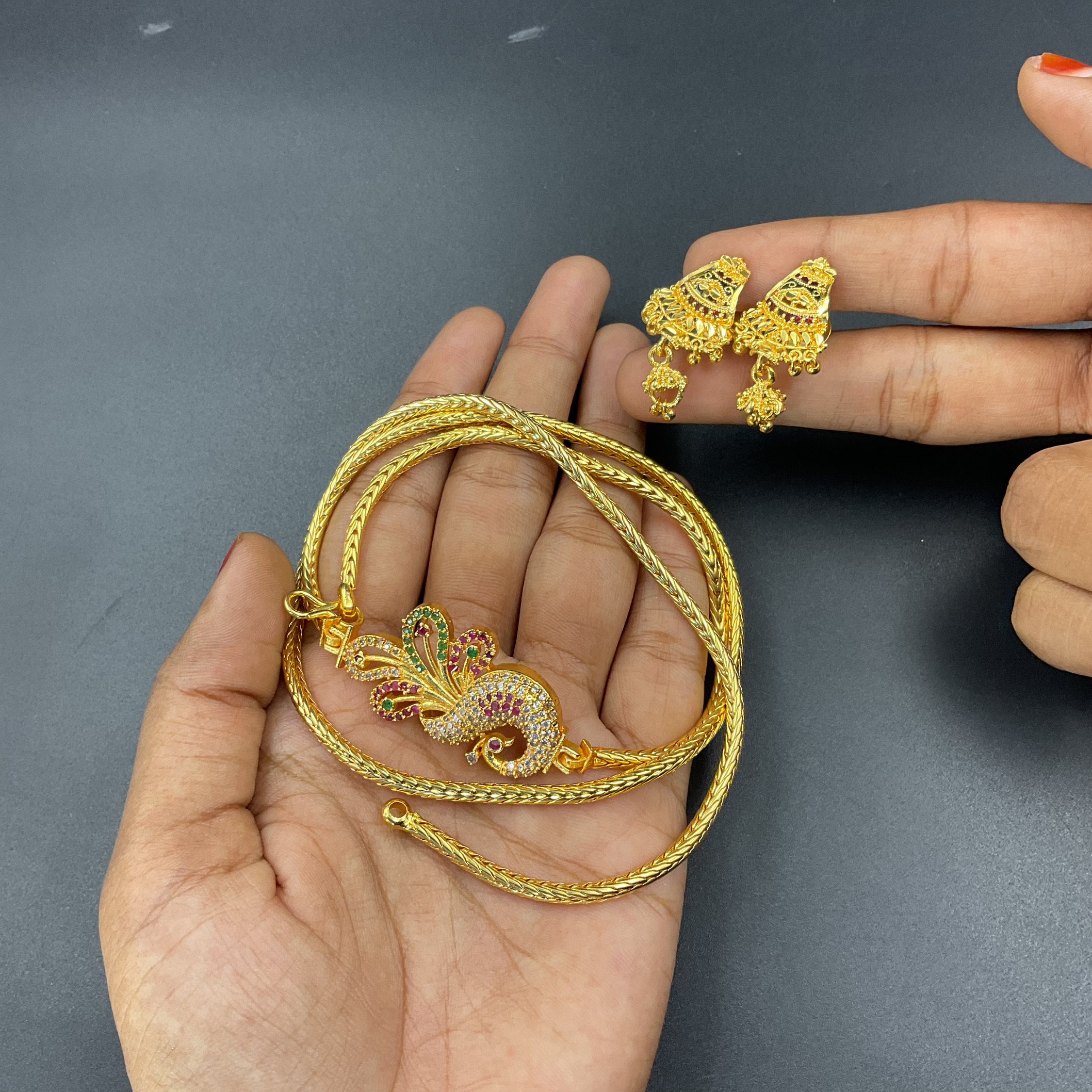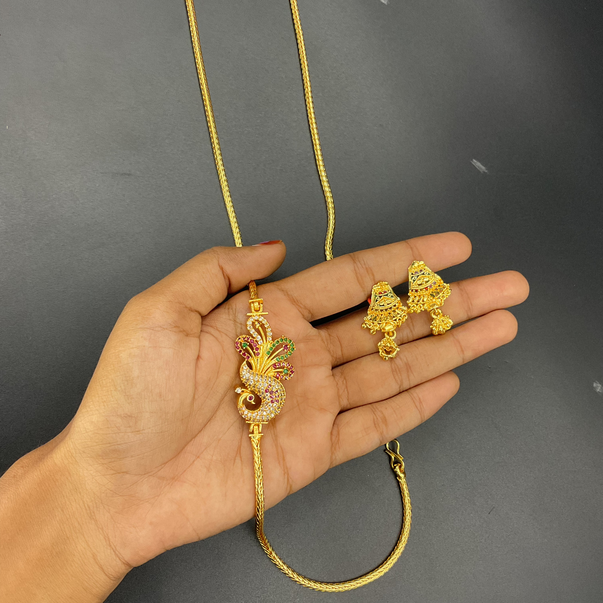 Mogapu Chain Peacock Design With Earring
